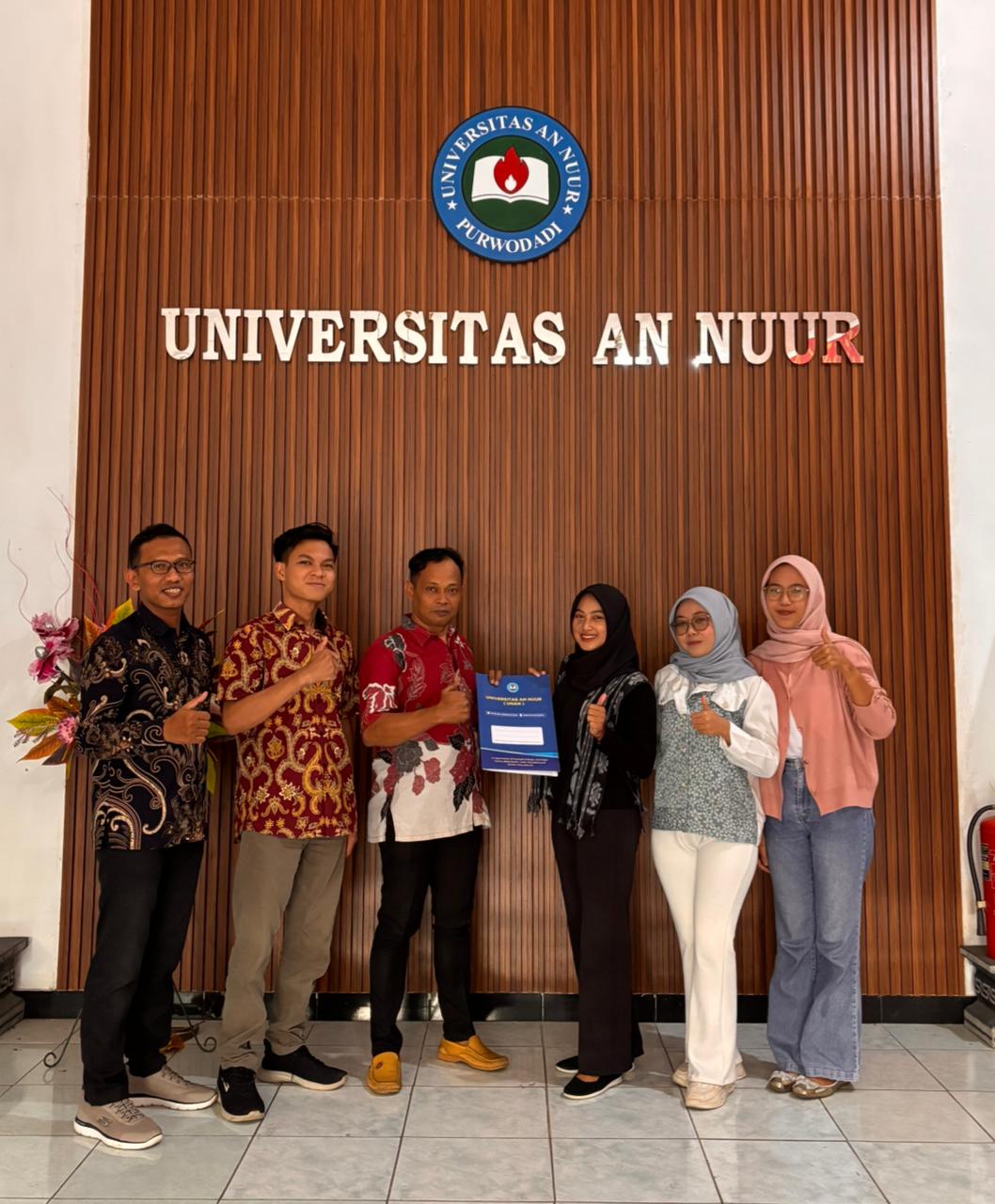 PURWODADI - Universitas An Nuur memberikan apresiasi kepada mahasiswa yang berhasil mengharumkan nama kampus di ajang Pekan Ilmiah Mahasiswa Nasional (PIMNAS) ke-38 di Makassar. Bentuk apresiasi tersebut diwujudkan melalui pembebasan kewajiban Kuliah Kerja Nyata (KKN) bagi tim yang dinyatakan lolos PIMNAS, sebagai dukungan nyata terhadap prestasi, kerja keras, dan daya saing mahasiswa di level nasional.