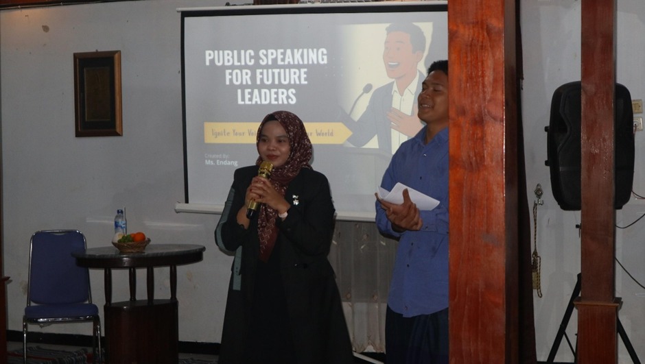 Selanjutnya, pada sesi materi kedua, peserta memperoleh pembekalan dari Miss Endang Susilowati, M.Pd. melalui materi “Public Speaking”. Materi ini berfokus pada pengembangan keterampilan berbicara di depan umum, mencakup pengelolaan rasa gugup, penyusunan informasi yang terstruktur, serta teknik penyampaian informasi secara jelas dan meyakinkan di hadapan audiens.