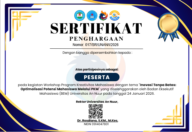 "Universitas An Nuur" Menjadi unggul dibidang ilmu sosial, sains dan teknologi yang berjiwa kewirausahaan berskala internasional.