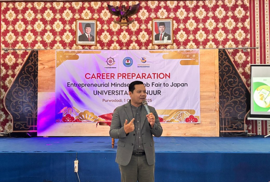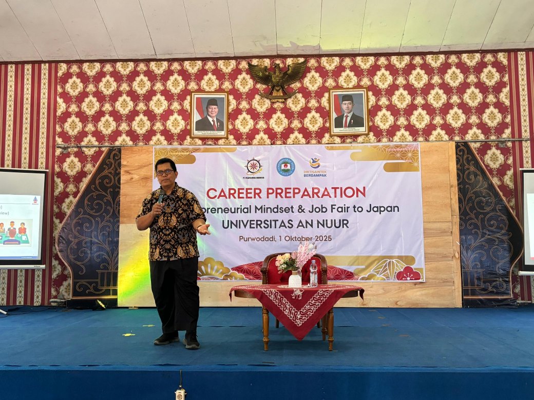 Purwodadi – Universitas An Nuur menggelar acara Spesial Event Career Preparation: Entrepreneurial Mindset & Job Fair to Japan sebagai bagian dari Pembekalan Calon Wisudawan Tahun 2025. Acara ini berlangsung pada Rabu, 1 Oktober 2025, di Auditorium Universitas An Nuur, dan diikuti oleh 217 calon wisudawan dari berbagai program studi.