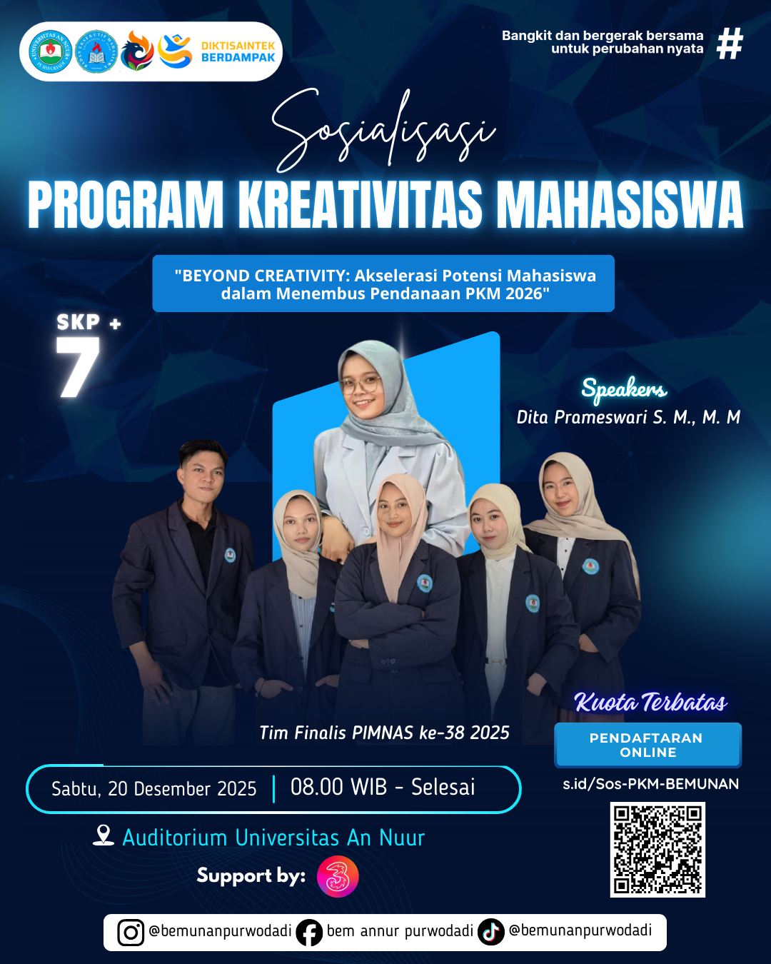 Purwodadi, 26 November 2025– Kabar membanggakan datang dari dunia kemahasiswaan Universitas An Nuur Satu tim Program Kreativitas Mahas